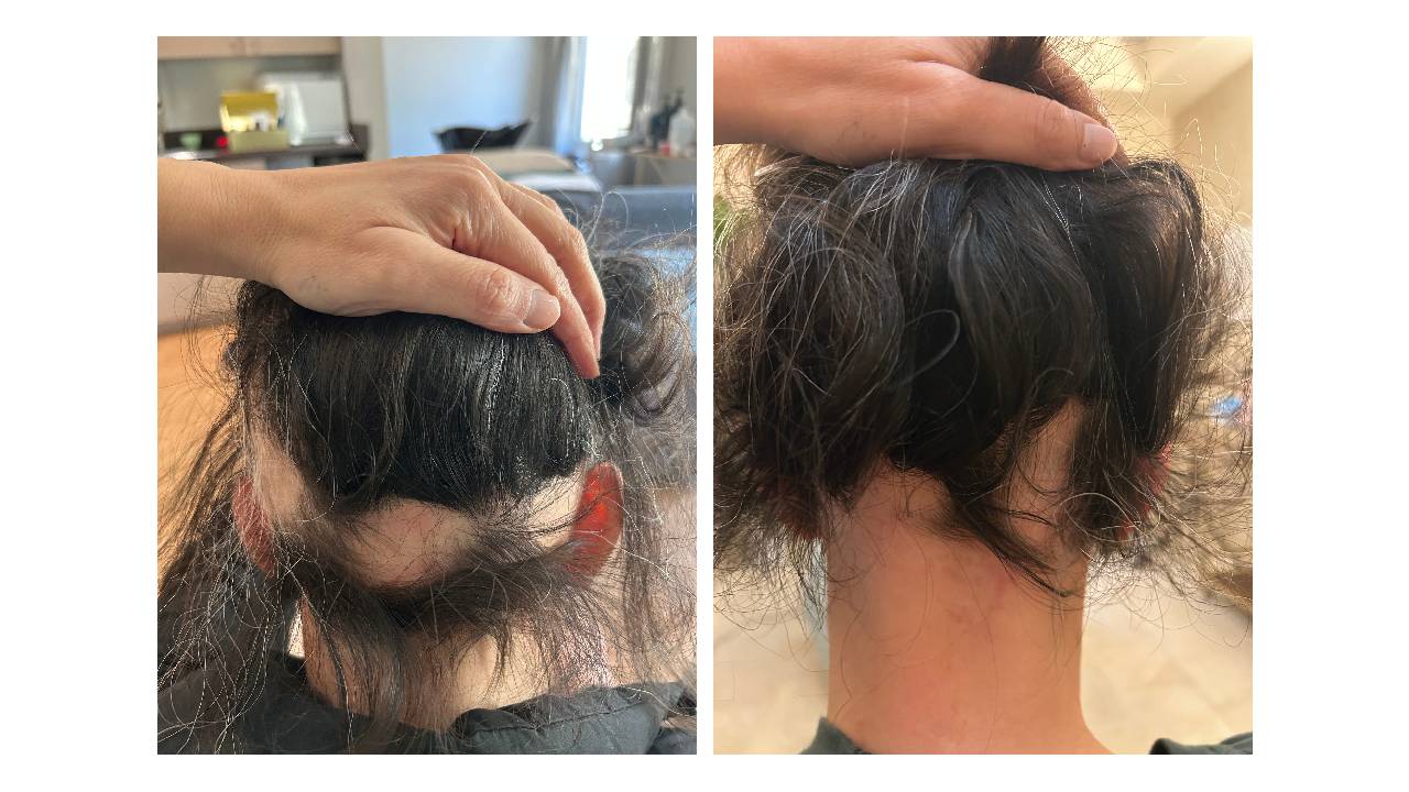 After eight months of treatment, the client exhibited significant improvement. Full regrowth was achieved in the top, sides, and crown-adjacent scalp. Recurrent fungal infections were eradicated, and scalp imaging confirmed the absence of active alopecia areata lesions in most regions. The ophiasis band in the occipital scalp remained the most resistant, though activity had decreased in intensity and surface area.